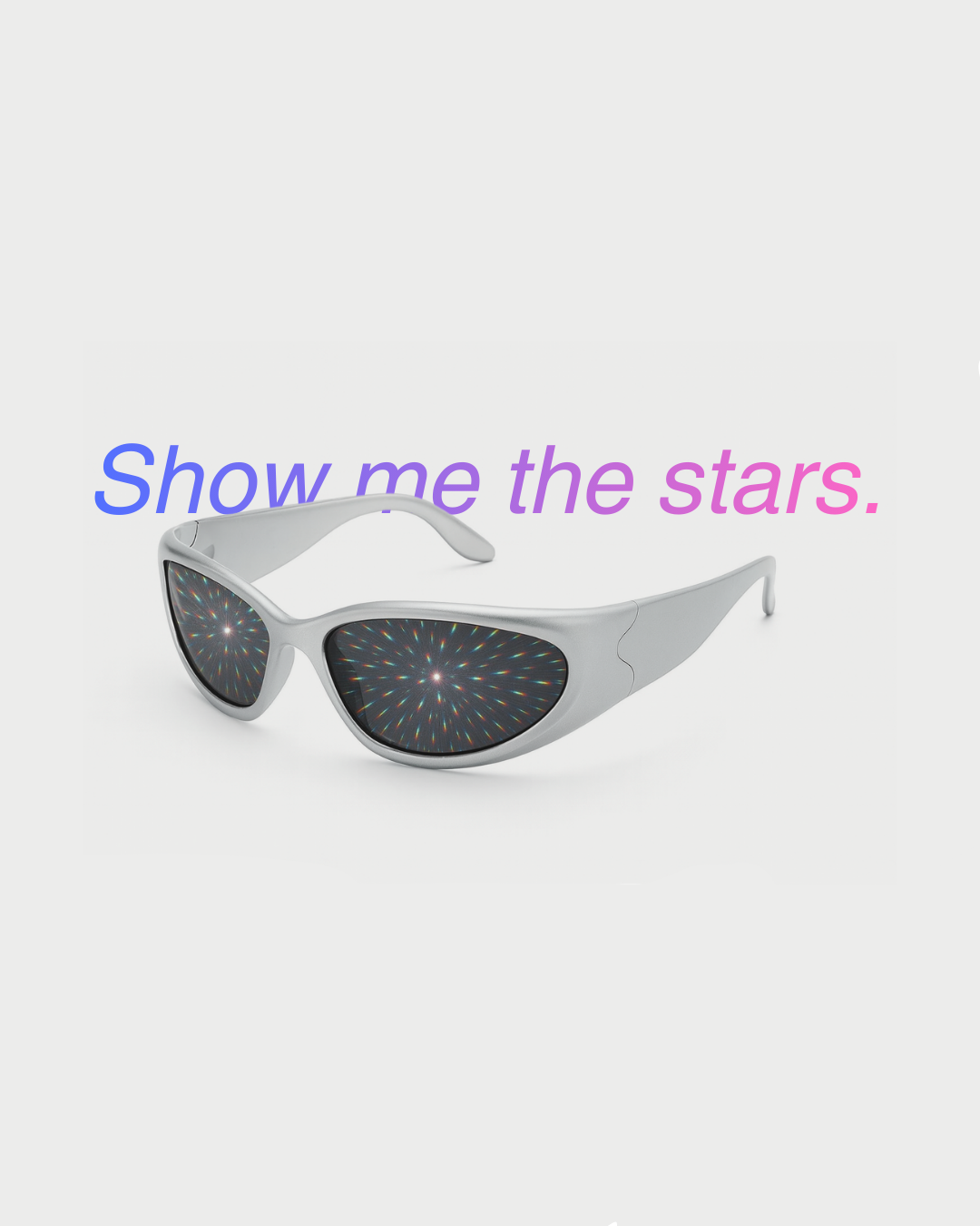 Each pair uses high-density diffraction patterns for an intensified festival experience.